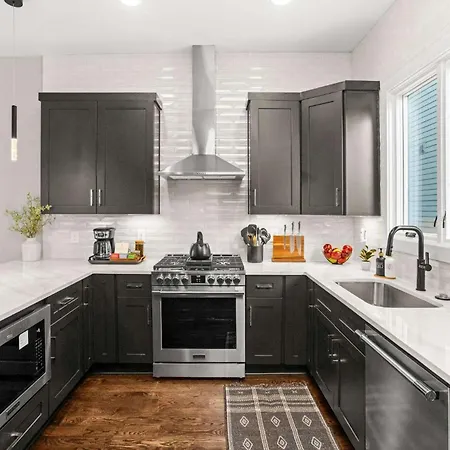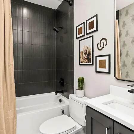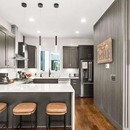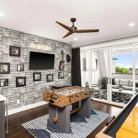 This Nashville property has an equipped kitchen which includes a fridge, oven, and a kitchenware. Guests can try American dishes in Knockout Wings situated in the vicinity of 2 Adjacent Luxury Homes Rooftop Decks & Game Rooms. Located 450 feet from 2 Adjacent Luxury Homes Rooftop Decks & Game Rooms, Jefferson st & 12th Ave n Eb bus station offers transportation choices in the vicinity.