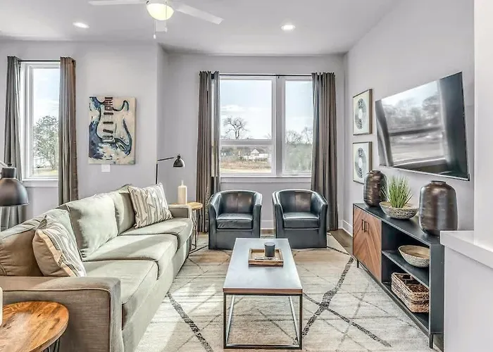 Located just 6 minutes by foot from Greater Saint John Missionary Baptist Church, 2 Nashville Townhomes - Sleeps 24-Rooftop Patios villa gives easy access to various tourist attractions in the area.