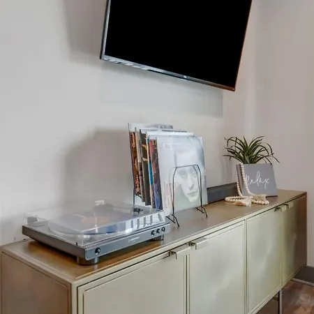 6 Min To Broadway - Gym Rooftop Sleeps 8 villa comprises a fully-fitted kitchen with an electric kettle, coffee and tea making equipment, and a fridge. 3rd and Lindsley Bar and Grill as a dining choice is just 0.8 miles from the Nashville villa. Nashville International airport is 0.5 miles away from this accommodation.