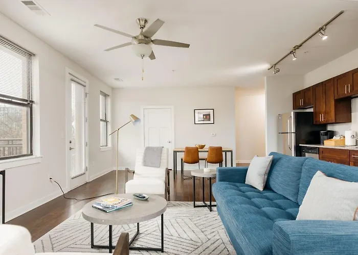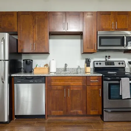 A fully equipped kitchen has oven and a dishwasher allowing guests to cook their own meals. Nashville International airport is at a 14-minute driving distance, and 21st Ave Past West End Ave Sb bus stop is just near Cozysuites Music Row Spacious 2Br With Free Parking 55 apartment.