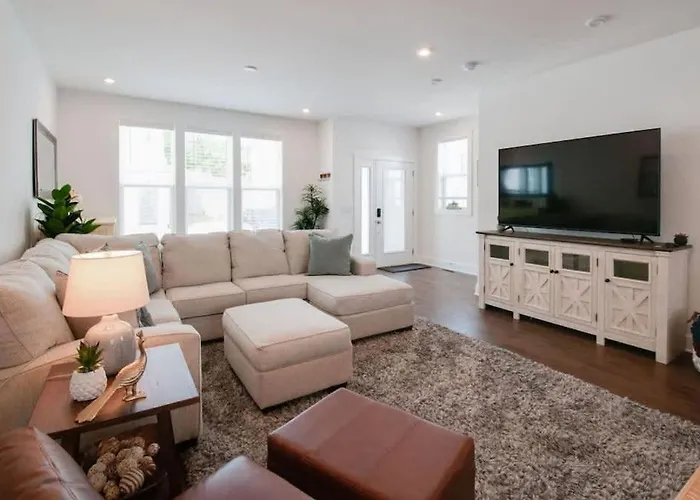 Nestled 3.5 miles from Madame Tussauds Nashville, the 3-bedroom Creative Oasis Minutes To Broadway Rooftop Deck Nashville villa entices guests to explore various tourist destinations nearby.