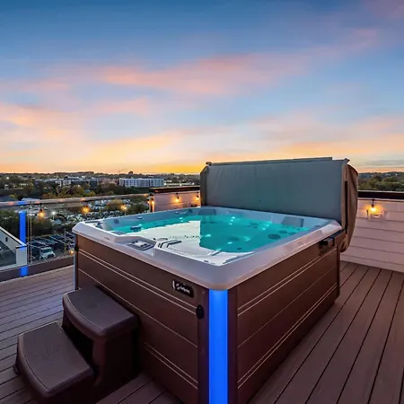 Situated 3.4 km from Farmer's Market, Disco Themed Hot Tub & Rooftop Decks In Nashville villa invites guests to relax at a patio.