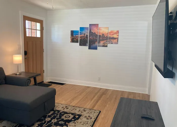 Situated 2.8 miles from Shelby Park, the 1-bedroom East Nashville Discovery villa entices guests to enjoy hiking, bowling, and cycling in the area. Located about a 15-minute drive from Downtown Nashville, this 1-bathroom villa boasts a patio with views of city.