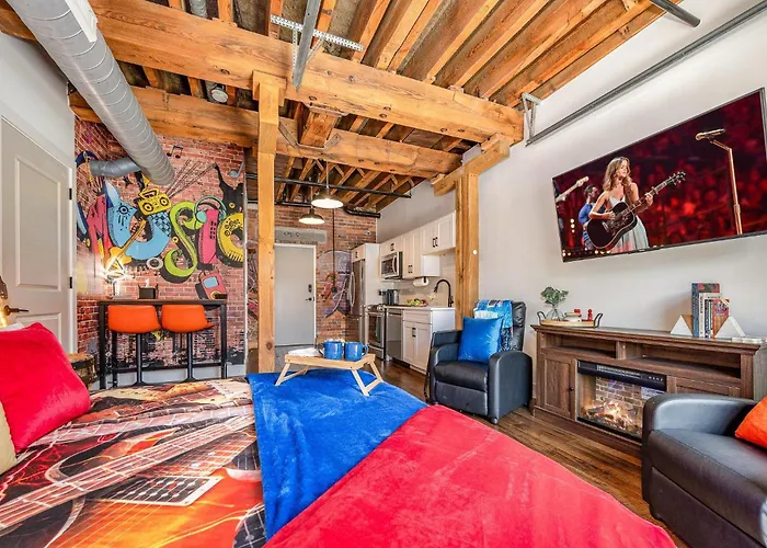 Nashville BroadwayThe 1-bedroom Lyric Loft - Music Row - 4 Mins To Broadway Villa Nashville provides easy access to various city attractions, such as Belmont Church, situated around 5 minutes' walk away.View details+More detailsCheck rates - Landing Modern 1Bd Rooftop Lounge Gym