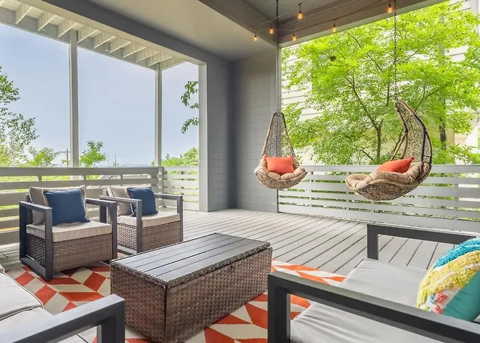 East NashvilleThe 2-bedroom The Green Jungle - Near Restaurants, Coffee And Bars Nashville villa offers swift access to various city sites, such as Eastland Baptist Church, situated nearly 5 minutes' walk away.View details+More detailsCheck rates - Nashville Escape With Skyline Deck And Hot Tub