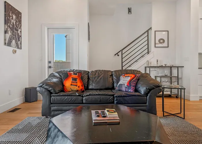 1202 Jackson StreetSituated approximately a 25-minute walk from Bridgestone Arena, the 3-bedroom Skyline Views Villa Nashville provides access to numerous tourist attractions in the area.View details+More detailsCheck rates - Modern Duplex - 1 Mile From Robust Nightlife