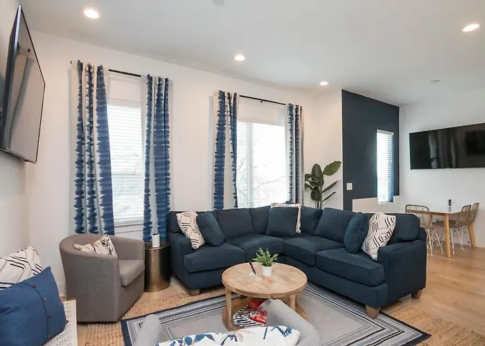 Scovel Street 1037The 4-bedroom Luxury Townhouse + Rooftop Deck + 1 1 Mi Downtown Nashville villa is located approximately a 25-minute walk from Wildhorse Saloon Club, giving access to various tourist spots nearby.View details+More detailsCheck rates - Bright And Fresh Large Backyard Minutes To Broadway