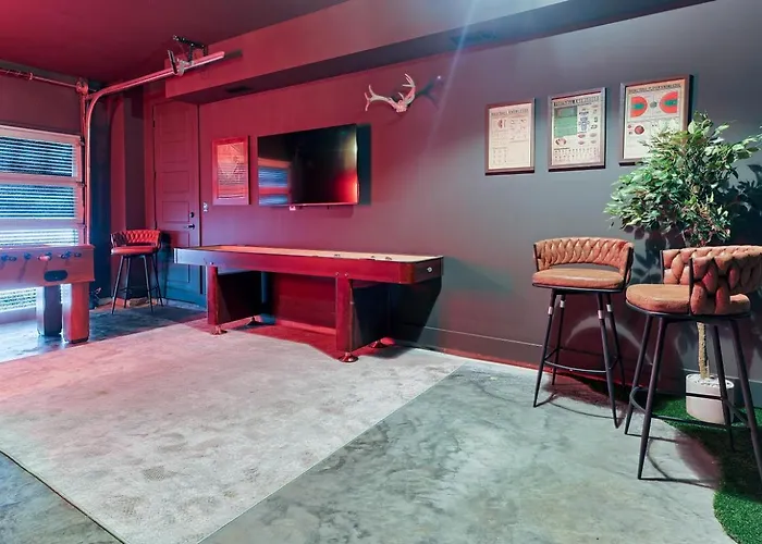 East NashvilleThe 4-bedroom 14 Bed Luxe Nashville Retreat With Game Room & Perfect For Large Groups! villa offers quick access to such city attractions as The Red Arrow Gallery, located only 6 minutes' walk away.View details+More detailsCheck rates - The Camellia & The Bluestem - Two Four Bedroom Homes