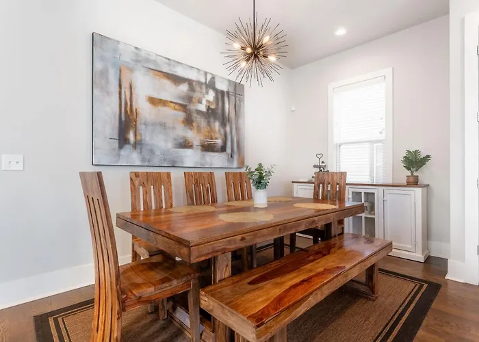 US$ 159 price for 1 nightMore detailsCheck rates - Modern 3 King Belmont Retreat With 2 Living Rooms Walk To Belmont & Vanderbilt Near Music Row The Gulch & 12Th South 2 Miles To Broadway Large Dining Table Smart Tvs Parking 24 Hr Hospitality