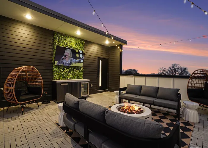 554 Rosedale AvenueThe 14-bedroom 4 Rooftop Decks 4 Hot Tubs Game Rooms & Sauna Nashville villa offers proximity to nearby tourist spots, such as Frist Art Museum, situated 4.7 km away.View details+More detailsCheck rates - Stylish East Nash Retreat, Walk To Local Favorites, Sleep 10 With Smart Tvs, Workspace & Fast Wifi, Attached Garage & Full Kitchen, Walk To Mas Tacos, Drive 10 Min To Downtown Broadway, 24 Hr Hospitality