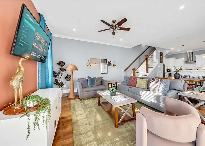 South NashvilleSituated 4.7 km from Bridgestone Arena, Gns Essentials - Nashville - 521 Camden Dr Unit A villa entices guests to explore various tourist attractions in the area.View details+More detailsCheck rates - Luxe 4Br Retreat With Hot Tub & Skyline Deck