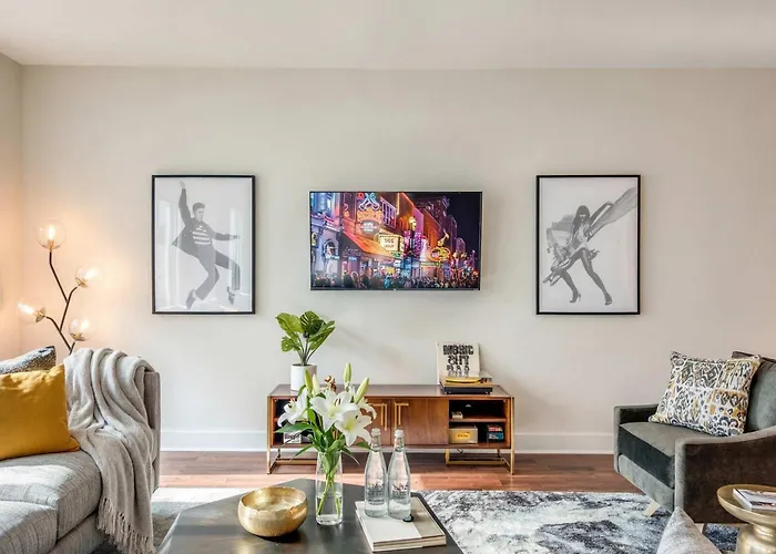 842 1St Avenue NorthSituated around 5 minutes' walk from University of Tennessee, the 1-room Amazing Pool, Steps 2 Broadway Right On The Riverfront! Nashville apartment offers guests easy access to various tourist…View details+More detailsCheck rates - Cozysuites Music Row Stunning 2Br -Free Parking 50