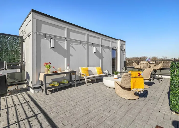 Wade Avenue 1112Situated nearly 25 minutes' walk from FirstBank Stadium, the 0-bedroom The Waylon - 8 Beds And Cozy Rooftop Lounge Nashville villa invites guests to relax at a patio.View details+from