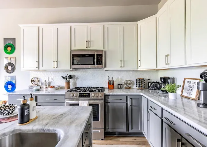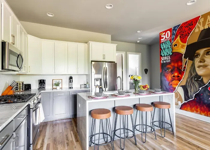 East NashvilleThe 8-bedroom The Camellia & The Bluestem - Two Four Bedroom Homes Nashville is located about a 25-minute walk from the modern George Jones Museum and invites guests to enjoy a patio.View details+More detailsCheck rates - Stylish East Nash Townhouse, Walk To Favorite Eats, Cozy Den, Workspace, Smart Tvs And Fast Wifi, Full Kitchen, Garage And 24 Hr Hospitality, Near Mas Tacos, Rosepepper And Five Points, 10 Min To Broadway