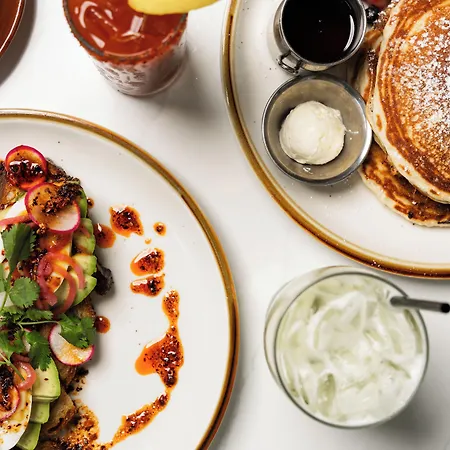 The American Tall Tales Rooftop restaurant prepares American dishes.