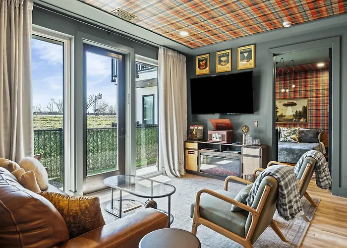 The apartment ensures your comfort by providing a fully equipped kitchen with a microwave oven, a refrigerator, and kitchenware. Guests can enjoy American dishes in 3rd and Lindsley Bar and Grill, which is merely 1.2 km away. The nearest bus stop to the property is Fain st & Claiborne st Eb, which is approximately a 5-minute walk away. This accommodation also provides guests with access to a fitness studio, allowing them to focus on their physical well-being. Luxe Nashville Trio Sleeps 21 And Rooftop Access apartment boasts a patio.