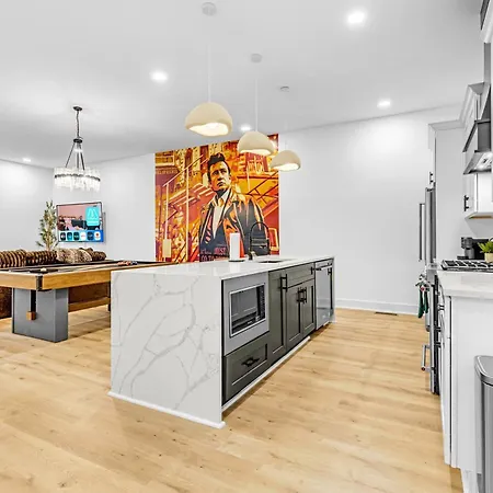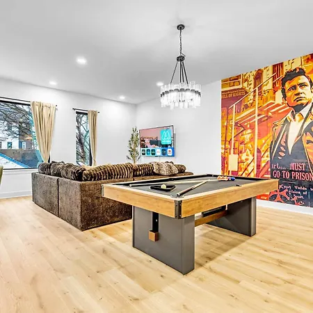 The 4-bedroom Luxury Hot Tub & Rooftop Deck Downtown Nashville villa is located approximately 10 minutes by car from Nashville WhatLiftsYou Wings Mural and provides horse riding and fishing for active guests. Providing guests with Wi-Fi and parking, the Nashville holiday home is 3.6 miles from The Parthenon.