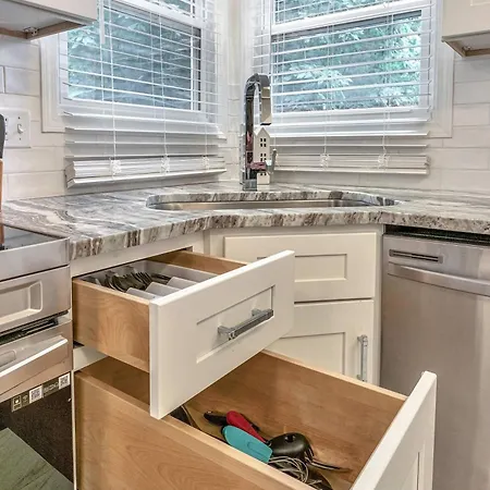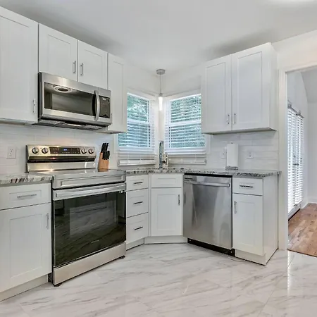 Nashville Nest: Renovated Retreat Near Bna villa has an equipped kitchen with a fridge, oven, and a dishwasher for comfortable stay. Nashville Nest: Renovated Retreat Near Bna villa is also a 15-minute drive from Nashville International airport.