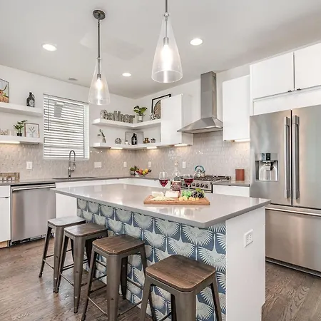 This Nashville villa houses an equipped kitchen with a fridge, oven, and a kitchenware. El Metate Autentico Mexican Restaurant as a dining choice is in the vicinity of the property. Thanks to Dickerson Pike & Gatewood Ave Nb bus stop, located just a few steps from Riff & Rest - 2 Stylish Homes - Mins To Germantown, guests can easily explore Nashville.