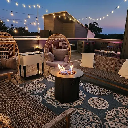 Rooftop Views Ping Pong Lounge Nashville villa is located 2.8 miles from Fort Nashborough and invites guests to enjoy a patio. Offering parking as well as Wi-Fi, this villa is situated in the East Nashville district.