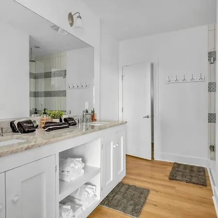 The 5-bedroom villa is nestled in the East Nashville district, a 10-minute drive from Bicentennial Capitol Mall State Park. East Park is located only steps away from the 5-bathroom villa, and Dickerson Pike & Gatewood Ave Nb bus station is 100 feet away. The nearby educational landmarks include Fisk University, which is situated 3 miles from this Nashville property.
