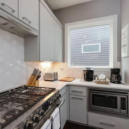 Southside Extraordinaire Walk To Gulch Lux Four Bedroom villa has a fully-fitted kitchen which includes coffee and tea making machines, a fridge, and a kitchenware. Party Fowl with delectable dishes is 5 minutes' walk away. Guests can also reach the villa by car from Nashville International airport in 15 minutes.