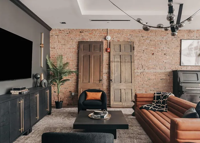 Located in just around the corner from Downtown Nashville, this holiday home awaits you in the Nashville Broadway district. Guests can visit Rose Park, which is 1.5 miles from the Nashville villa, or check out Adventure Science Center, which is 1.2 miles away. Starr Piano - Highball And Bellamy Suites - 8 Bedroom villa also enjoys proximity to Southern Baptist Convention, situated a mere 6 minutes' walk away.