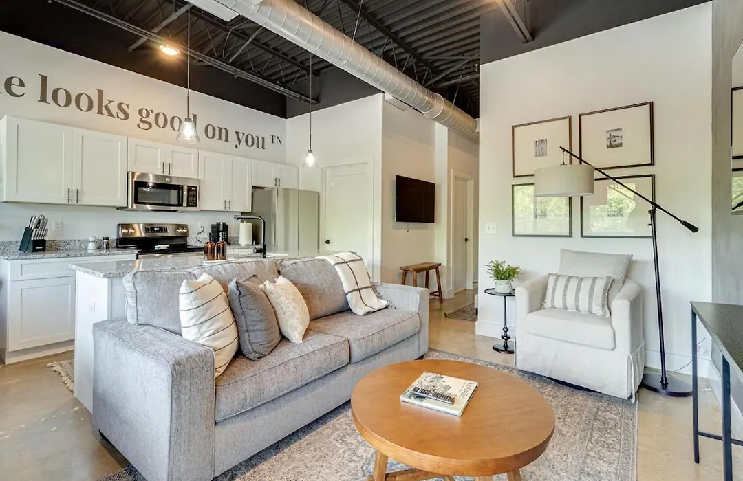This apartment is located in the South Nashville district, a 15-minute drive from Nashville International airport. Frist Art Museum is 3.6 miles from the apartment.