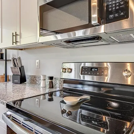 A fridge and a dishwasher are a standard in a fully equipped kitchen. The nearest bus stop to the accommodation is Arts Magnet School, which is approximately 10 minutes' walk away.