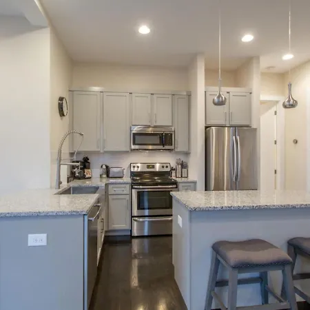 A fully equipped kitchen with a fridge, oven, and a kitchenware is included in Stylish Home Private Rooftop Perfect Location. Bella Napoli serving food and drinks is 7 minutes by foot from the Nashville property. Guests can easily reach Nashville International airport, located 15 minutes' drive away from this villa.