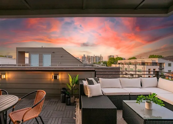 Why choose Stylish New Gulch Home Rooftop Deck W City Views Nashville