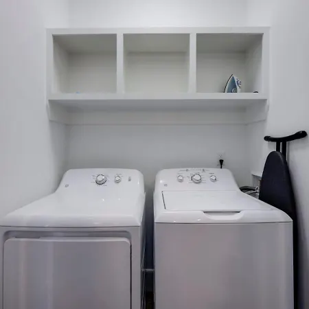 Ten Minutes To Broadway Music City Modern Townhome villa comes with a bathroom with a washing machine. There are also a hairdryer.