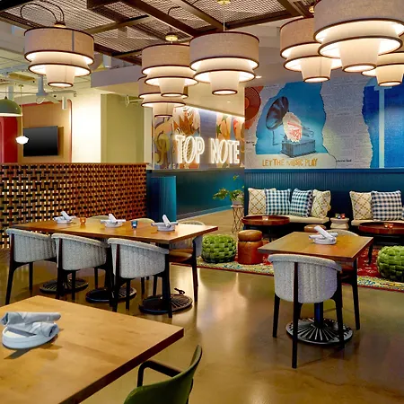 A complimentary vegetarian breakfast is served from 7:00 AM to 10:00 AM on weekends. Moonshot Coffee, the onsite restaurant, serves Mediterranean cuisine, while Zeppelin Nashville boasts American specialties. Guests can relax and have a snack in the 24-hour bar.