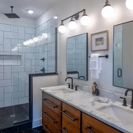 Netsled in the South Nashville district, the Nashville holiday home is 0.4 miles from Seay Hubbard United Methodist Church and 2.1 miles from such shopping venues as Farmer's Market. The George Jones can be found approximately 10 minutes by car from the villa, and Ryman Auditorium is approximately a 25-minute stroll away. Positioned 1.6 miles from St. Mary of the Seven Sorrows, the accommodation is popular among both worshippers and tourists.