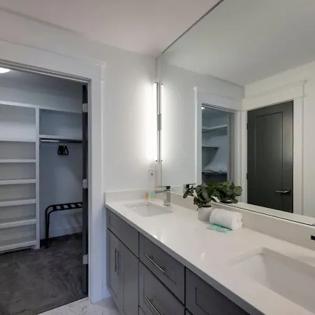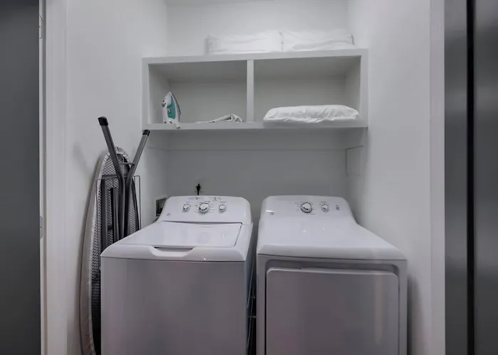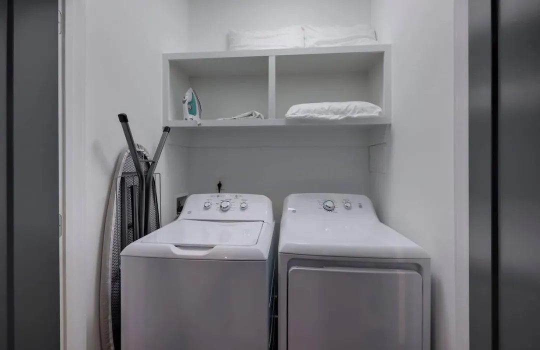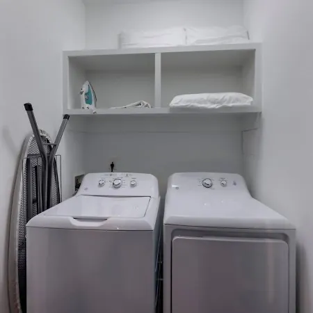 Two Side By Side Townhomes West Nashville Luxury villa comes with a bathroom with a washing machine. A hair dryer are included for added comfort.
