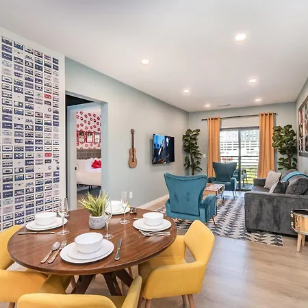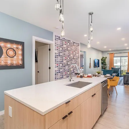 This Nashville holiday home in the Nashville Broadway district of Nashville is situated a mere 0.6 miles from Country Music Hall of Fame and Museum and 1.5 miles from such shopping places as the lively daily Farmer's Market. Located around 25 minutes by foot from Wildhorse Saloon Club, the villa is also a short way from Nashville WhatLiftsYou Wings Mural. Hyve - Neon Lights - Pool & Gym - Walk To Broadway Villa offers sports enthusiasts to discover Bridgestone Arena, located just 0.7 miles away.