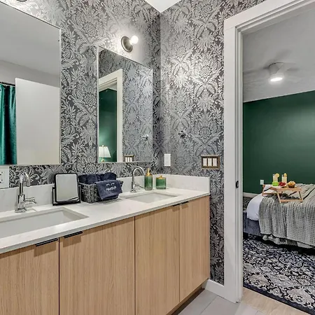 Situated in the Nashville Broadway district, 19 minutes' walk from Fort Negley Park and Visitors Center, the 2-bedroom Hyve - Prohibition Parlor - Walk To Broadway Villa Nashville comes with a swimming pool for guests to unwind. Guests can enjoy horse riding at this 2-bathroom holiday home, located a short way from Rose Park.