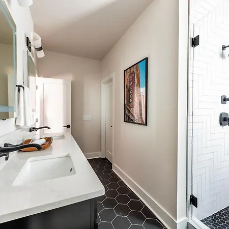 Situated merely 5 minutes' stroll from Belmont Church, the 4-bedroom Luxe-Cowboy Country-Patio Hot Tub-Downtown Living Villa Nashville offers quick access to numerous city landmarks nearby.