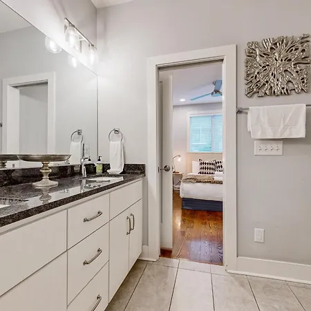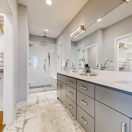This 4-bedroom villa is nestled in the The Gulch district, 1.4 miles from the education hub like Vanderbilt University. Guests can access St. Mary of the Seven Sorrows not far from, while RCA Studio B is a 16-minute walk away. The 4-bathroom villa is a good starting point for Nashville's sports attractions, including Bridgestone Arena, which is 1.3 miles away.