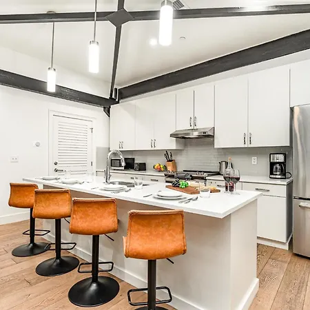 Nestled about 600 feet from Downtown Nashville, this 3-bathroom holiday home is 1.5 miles from Tennessee Central Railway Museum. The villa is a 15-minute drive from Nashville International airport and in close proximity to Southern Baptist Convention. Located 1.9 miles from the 21st-century headquarters campus "Centennial Park", The Saddlery-Playlist-2 Units-Walk To Broadway Villa is also around 5 minutes by foot from entertainment venues like the live music venue "Ryman Auditorium".