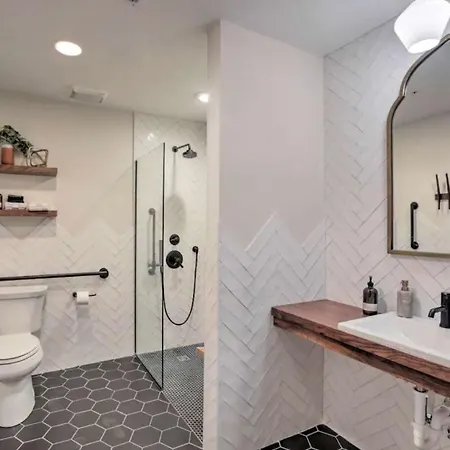Situated in the Downtown Nashville district, this holiday home is 0.3 miles from Municipal Auditorium and 1.2 miles from City Winery. Ryman Auditorium is located just a few steps from the Nashville villa, and 2nd Ave & Gay st Nb bus station is 150 feet away. Located 0.2 miles from the modern George Jones Museum, the Nashville property is also not far from such cultural venues as Frist Art Museum.